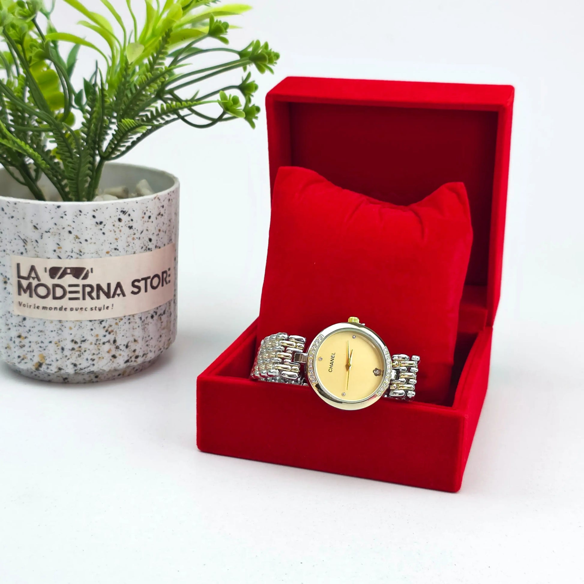 "Montre féminine élégante avec bracelet inoxydable 🌟. Un design raffiné qui allie style et durabilité. Résiste à l’usure quotidienne tout en offrant une touche de luxe intemporel. Idéale pour sublimer vos tenues au quotidien ou lors des grandes occasions."