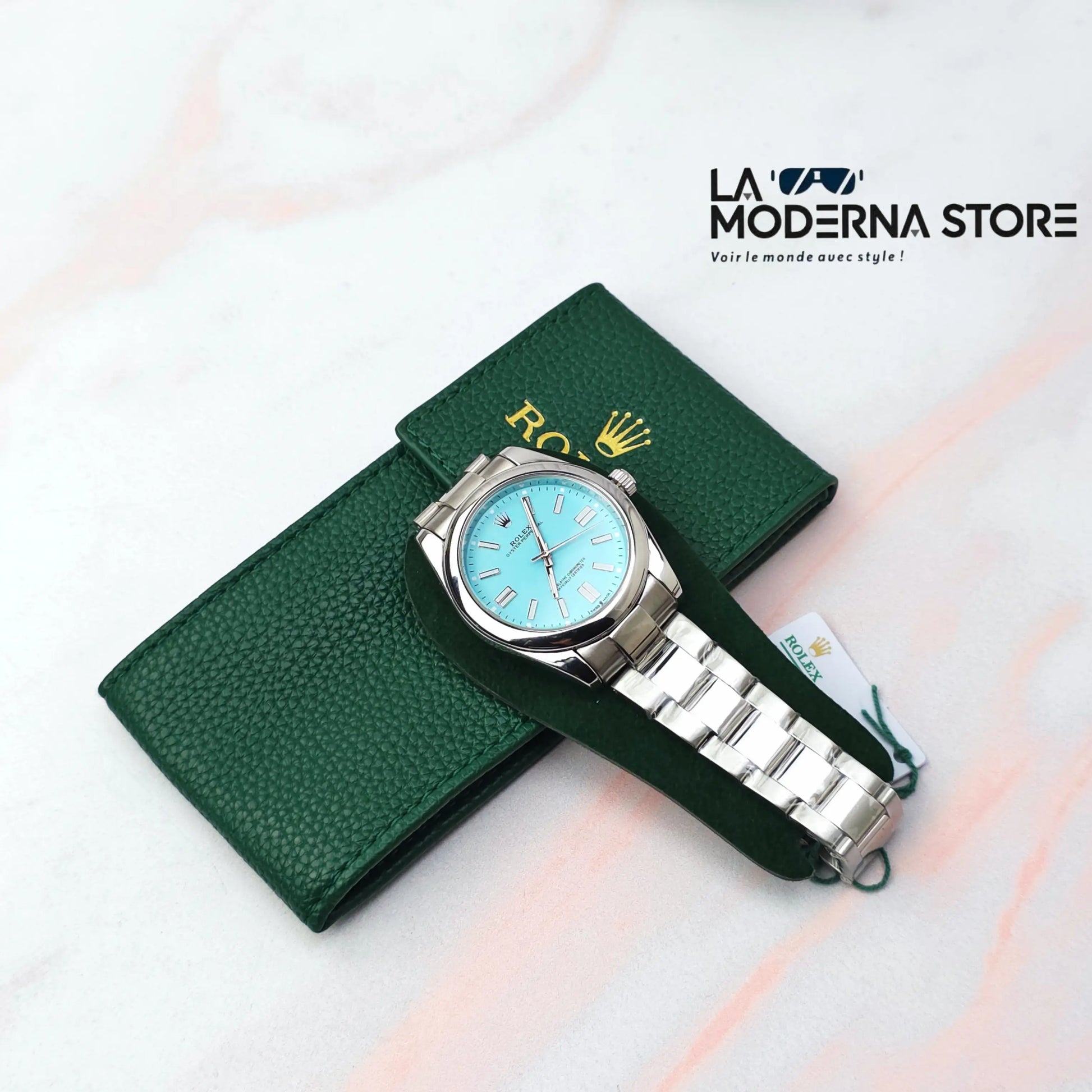 Découvrez l'équilibre parfait entre sobriété et audace. Cette Oysteer Perpetual se distingue par son cadran bleu turquoise captivant, une couleur vive qui apporte une touche de modernité à un design classique et universel.